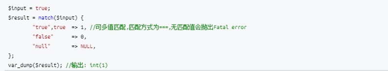 match是PHP8中新增的關鍵字(即無法再做類名),其作用與switch有點相似,用于變量的值轉換與賦值,使用如下: